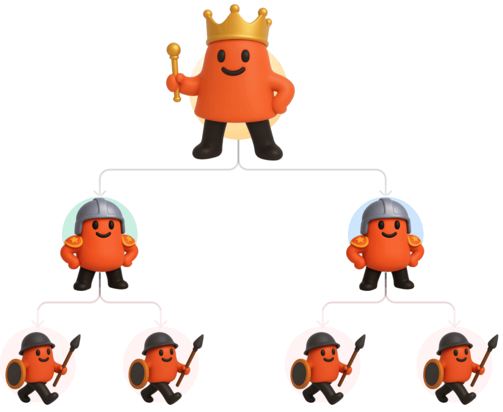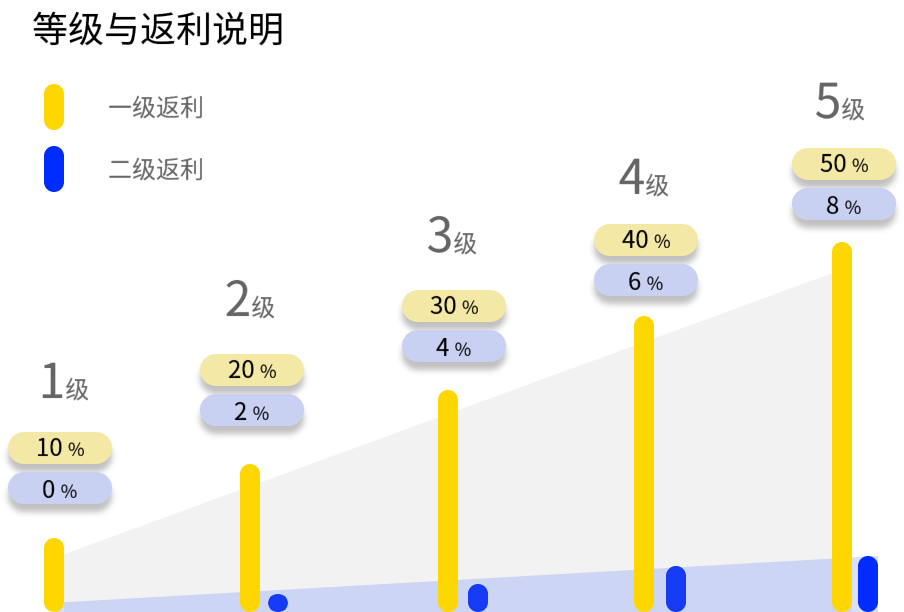 推荐 10 位用户,每人消费 1000 元,返利 40%,可得 4000 元; 每人再推荐 10 位用户,共 100 人,每人消费 1000 元,返利 8%,可得 8000 元; 你总共可获得返利:12000 元